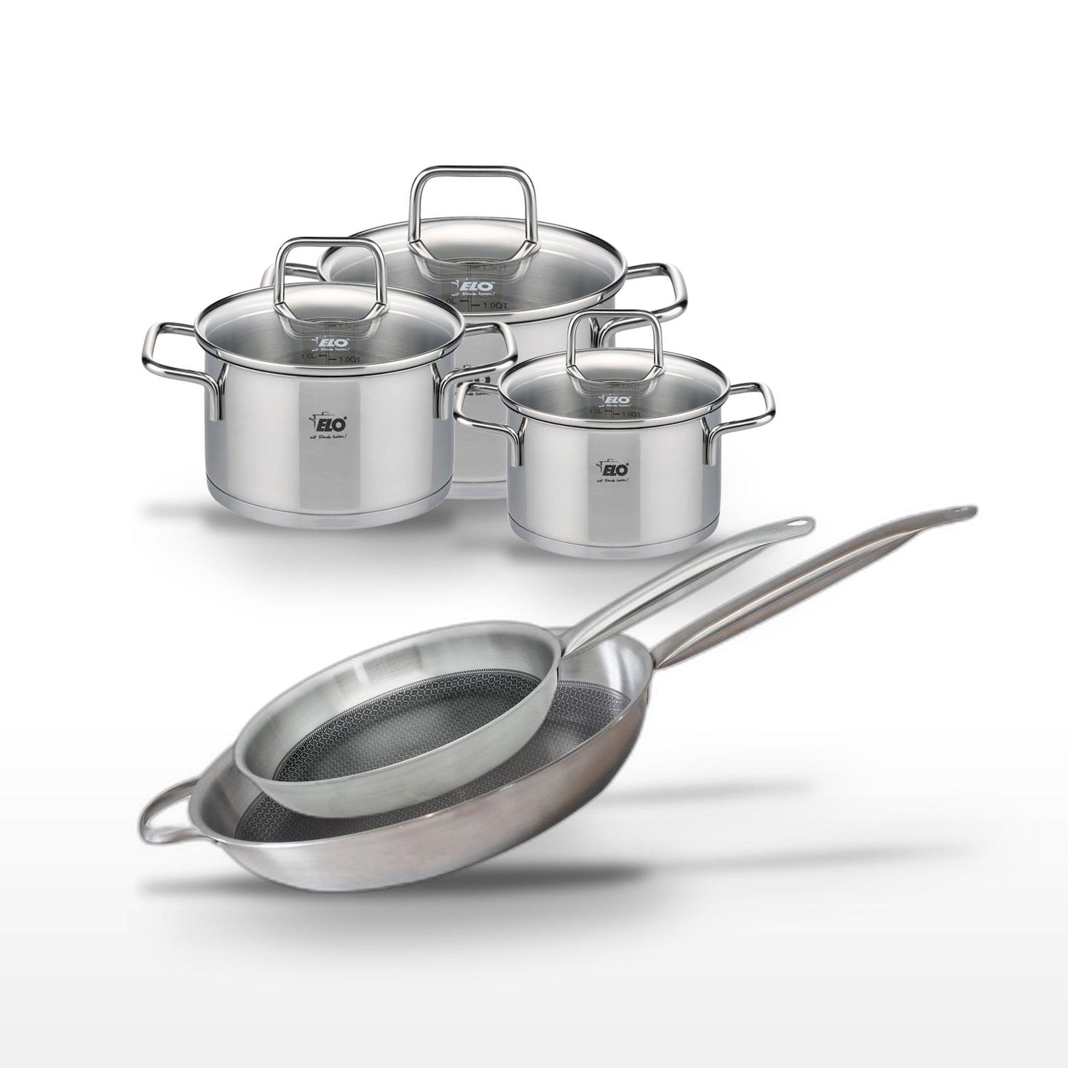 - DESCRIPTION : Ce lot Elo Relief Solution inclut 2 poêles et 3 faitouts en acier inoxydable, optimisant la cuisson pour des plats savoureux.