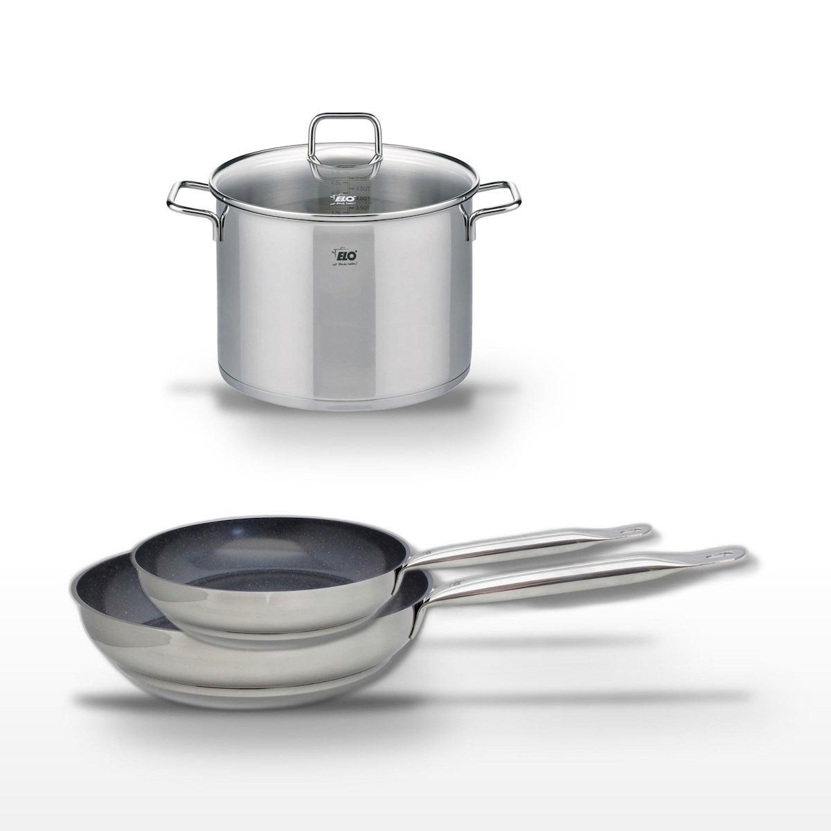 - DESCRIPTION : Ce lot Elo comprend deux poêles céramique sans PFAS et un faitout en inox. Conçu pour une cuisson saine et uniforme.