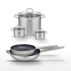 - COMPOSITION : COMPOSITION : Les poêles sont en acier inoxydable avec revêtement sans PFAS. Les faitouts sont en inox avec couvercle en verre.