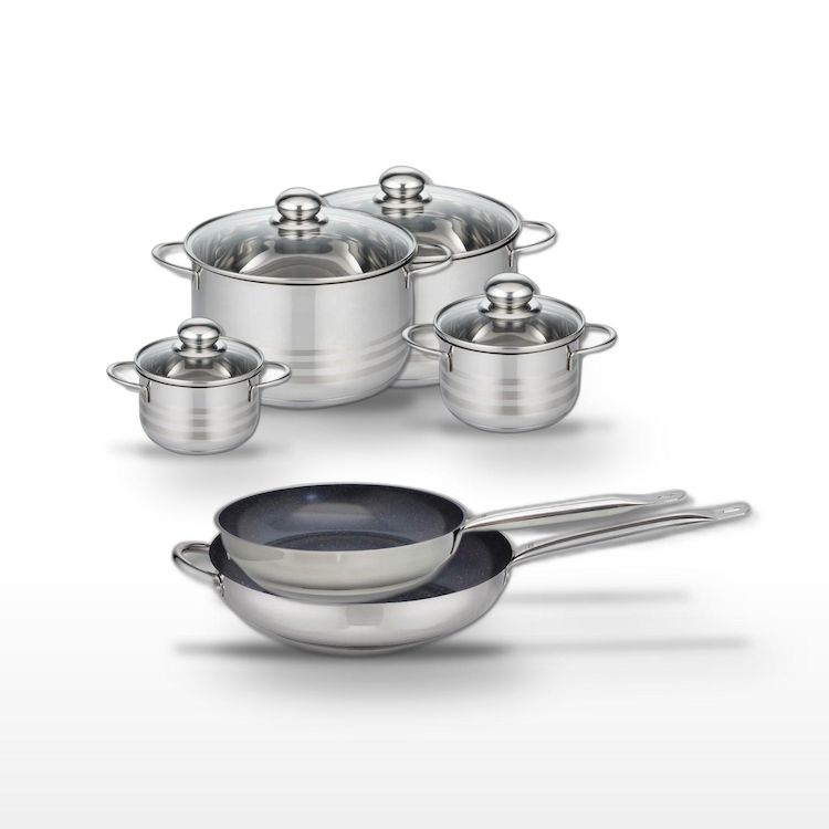 - COMPOSITION : COMPOSITION : Les poêles et faitouts sont fabriqués en acier inoxydable 18/10 de haute qualité, garantis sans PFAS, pour une cuisson saine et sans risque pour la santé.