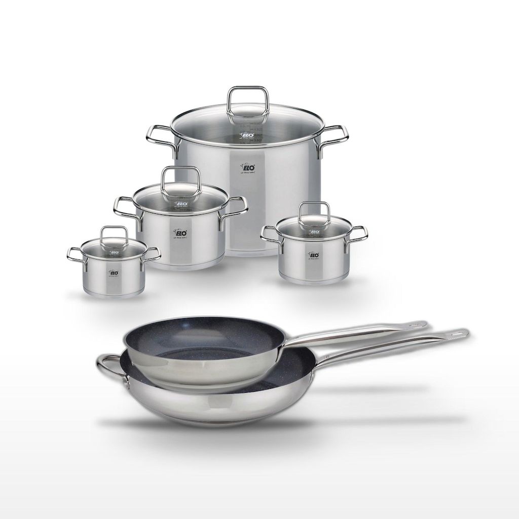Lot 2 Poêles céramique 28/32cm & 4 Faitouts inox 14/16/20/26cm Elo Profi Therm Platinum