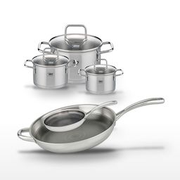 - PETIT + : Le revêtement ELODUR® Professional sans PFAS des poêles assure une cuisson sans attache et une résistance aux rayures.