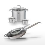 L'ensemble de faitouts et poêles Elo Relief Solution est conçu pour répondre aux exigences des professionnels de la cuisine tout en séduisant les amateurs. Chaque élément de ce lot est fabriqué en acier inoxydable 18/10, garantissant robustesse et durabilité. Les faitouts, disponibles en 12 cm, 14 cm et 26 cm, sont idéaux pour préparer une variété de plats, des sauces délicates aux plats mijotés. Les poêles de 24 cm et 32 cm, dotées d'un revêtement antiadhésif ELODUR® Select, assurent une cuisson uniforme et sans accrocs. Ce revêtement sans PFAS est non seulement respectueux de votre santé mais aussi facile à nettoyer. Le design ergonomique, avec un bord verseur et un manche creux, offre un confort d'utilisation optimal. Compatible avec tous les types de feux, y compris l'induction, cet ensemble est également adapté au four jusqu'à 240°C, élargissant ainsi vos possibilités culinaires. Elo, marque allemande reconnue, vous offre ici un produit alliant innovation technologique et esthétique moderne, garantissant une expérience culinaire de premier ordre.