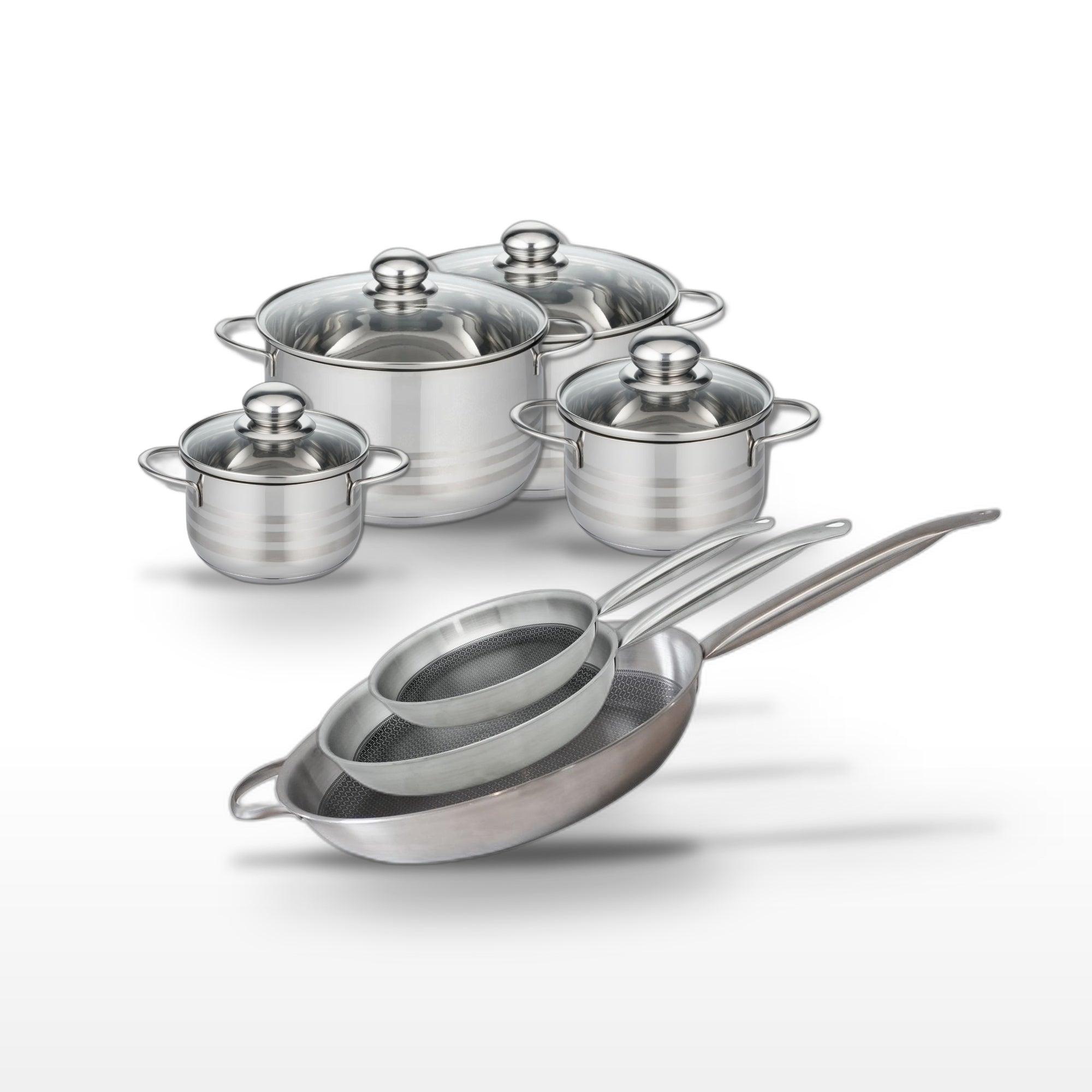 Lot 3 Faitouts 14/16/24cm & 3 Poêles 24/28/32cm Elo Relief Solution