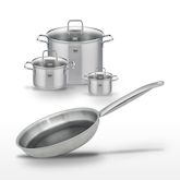 - DIMENSIONS : Faitouts de 14 cm, 20 cm, 26 cm et poêle de 28 cm, pour des préparations de 1 à 5 personnes.