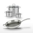 - COMPOSITION : Acier inoxydable de qualité supérieure et verre pour les faitouts, revêtement ELODUR® Professional pour la poêle.
