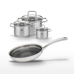 - COMPOSITION : COMPOSITION : Fabriqué en acier inoxydable de haute qualité, avec un revêtement antiadhésif ELODUR® Professional pour la poêle.