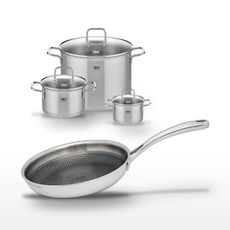 - PETIT + : Les faitouts disposent d'un fond capsulé pour une efficacité énergétique, tandis que la poêle avec revêtement ELODUR® assure une cuisson saine.