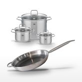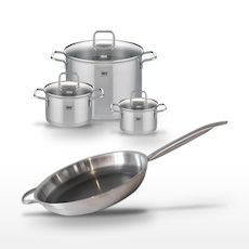 - COMPOSITION : Acier inoxydable 18/10, aluminium pour la poêle, verre pour les couvercles. Matériaux de haute qualité pour une durabilité et une performance exceptionnelles.