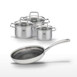 - COMPOSITION : COMPOSITION : Acier inoxydable de haute qualité avec revêtement ELODUR® Professional pour la poêle et inox pour les faitouts.