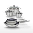- COMPOSITION : Poêles en acier inoxydable avec revêtement sans PFAS, faitouts en inox de qualité.