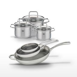 - COMPOSITION : Acier inoxydable 18/10 avec structure Triply pour les poêles. Faitouts en inox avec couvercles en verre, garantissant une répartition uniforme de la chaleur.