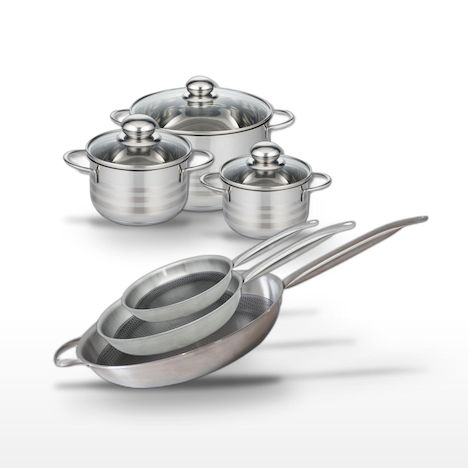 Lot 3 Poêles 24/28/32 cm & 3 Faitouts 14/16/24 cm Elo Relief Solution