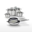 - PETIT + : Poêles avec revêtement ELODUR® Professional résistant aux rayures et faitouts avec couvercles en verre pour cuisson vapeur.