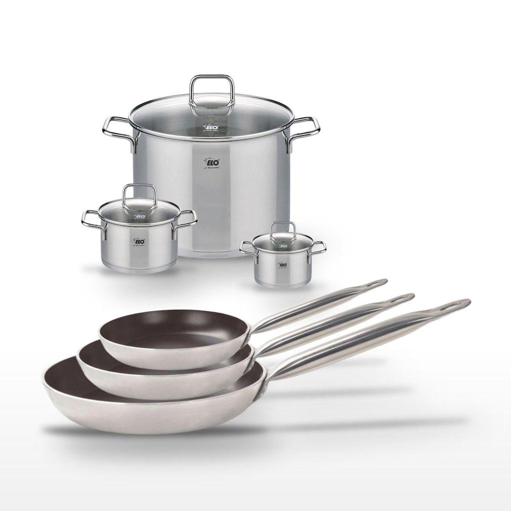 - DESCRIPTION : DESCRIPTION : Ce lot Elo est composé de poêles en céramique sans PFAS et de faitouts en inox, garantissant une cuisson saine et homogène. Idéal pour toutes vos préparations culinaires.