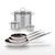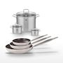 - COMPOSITION : COMPOSITION : Poêles en aluminium avec revêtement céramique et poignées en inox. Faitouts en acier inoxydable avec couvercles en verre.