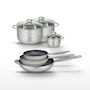 - COMPOSITION : Fabriqués en acier inoxydable 18/10, ces ustensiles allient solidité et résistance à la corrosion. Les poêles sont équipées d'un revêtement sans PFAS, et les faitouts sont accompagnés de couvercles en verre.