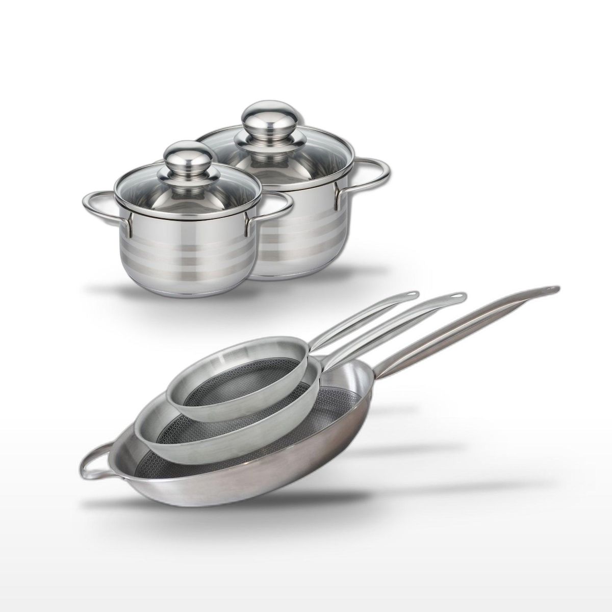 Lot 3 Poêles 24/28/32cm et 2 Faitouts 14/16cm Elo Relief Solution