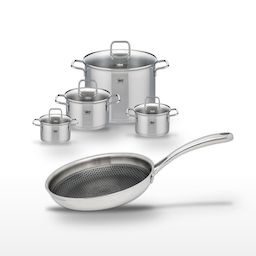 - PETIT + : PETIT + : Le revêtement antiadhésif de la poêle ELODUR® Professional permet une cuisson sans accroche, tandis que le fond capsulé des faitouts optimise la consommation d'énergie.