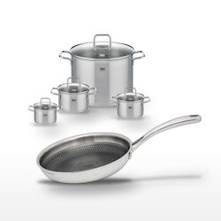 - PETIT + : Le revêtement antiadhésif ELODUR® Professional de la poêle assure une cuisson saine sans accroche, tandis que les faitouts conservent les vitamines grâce à leur fond capsulé éco-énergétique.