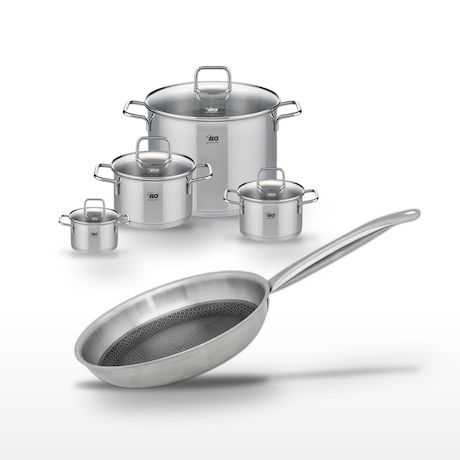 - DESCRIPTION : DESCRIPTION : Ensemble Elo Relief Solution avec 4 faitouts et 1 poêle en acier inoxydable, pour une cuisine polyvalente.