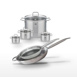 - COMPOSITION : Acier inoxydable pour les faitouts, acier inoxydable 18/10 et aluminium pour les poêles, avec revêtement ELODUR® Select.