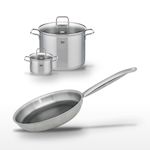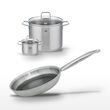 - DIMENSIONS : Faitout 16 cm (1,7 L), faitout 26 cm (9,5 L), poêle Ø 28 cm.
