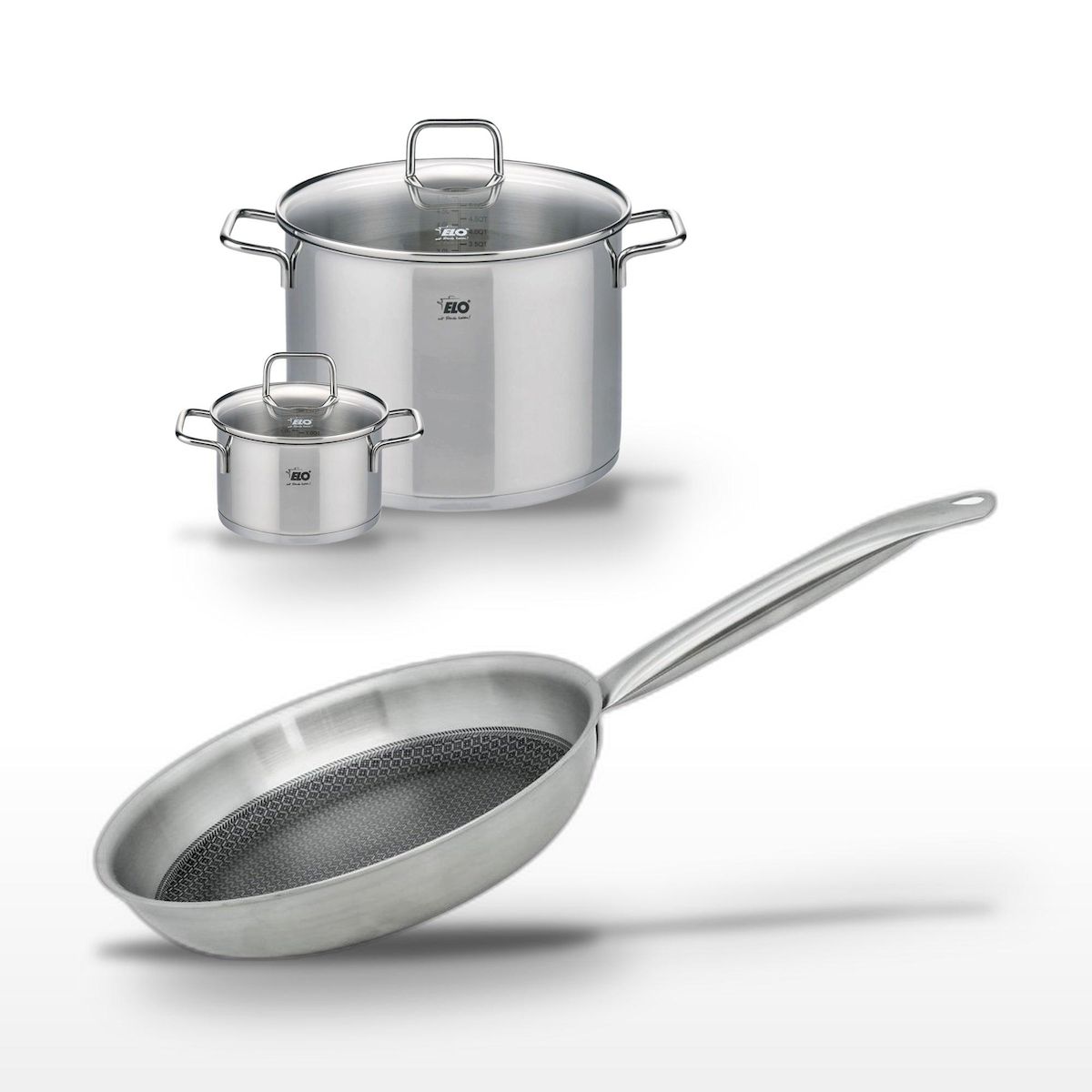 - DESCRIPTION : L'ensemble Elo Relief Solution est parfait pour une cuisine efficace et élégante. Les faitouts et la poêle offrent une cuisson homogène et sont compatibles tous feux.