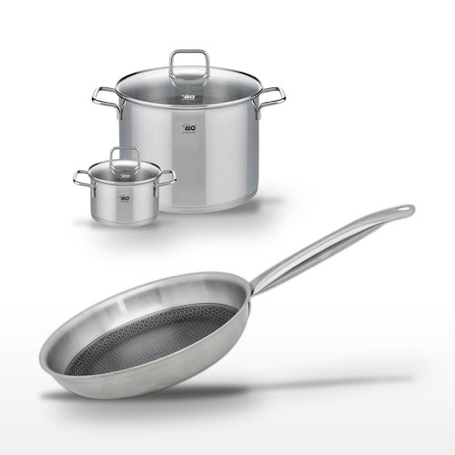 Lot de 2 Faitouts 16/26cm et Poêle 28cm Elo Relief Solution