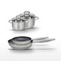 - COMPOSITION : COMPOSITION : Acier inoxydable 18/10, revêtement sans PFAS, couvercles en verre résistant.