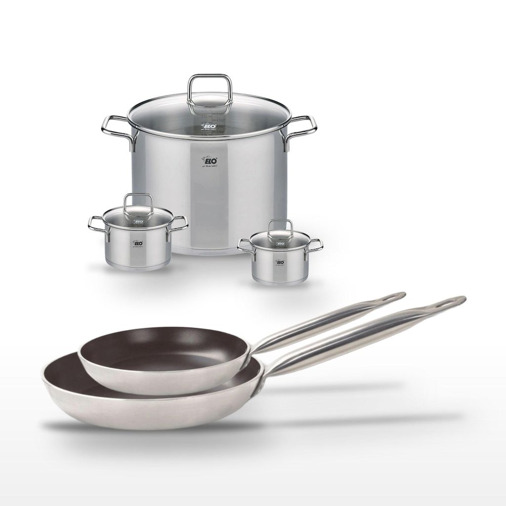 - DESCRIPTION : Ensemble de cuisine Elo Bistro Line avec 2 poêles en céramique sans PFAS et 3 faitouts en inox. Idéal pour une cuisson saine et homogène.