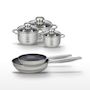 - COMPOSITION : COMPOSITION : Les poêles et faitouts sont fabriqués en acier inoxydable 18/10, assurant robustesse et résistance à la corrosion.