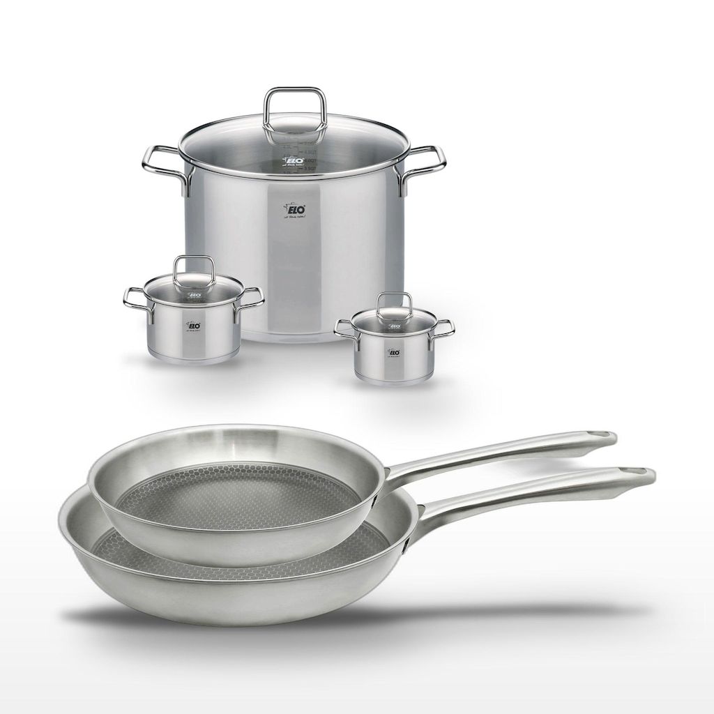 - COMPOSITION : COMPOSITION : Acier inoxydable robuste pour les poêles et les faitouts, avec un revêtement antiadhésif ELODUR® Select pour les poêles.