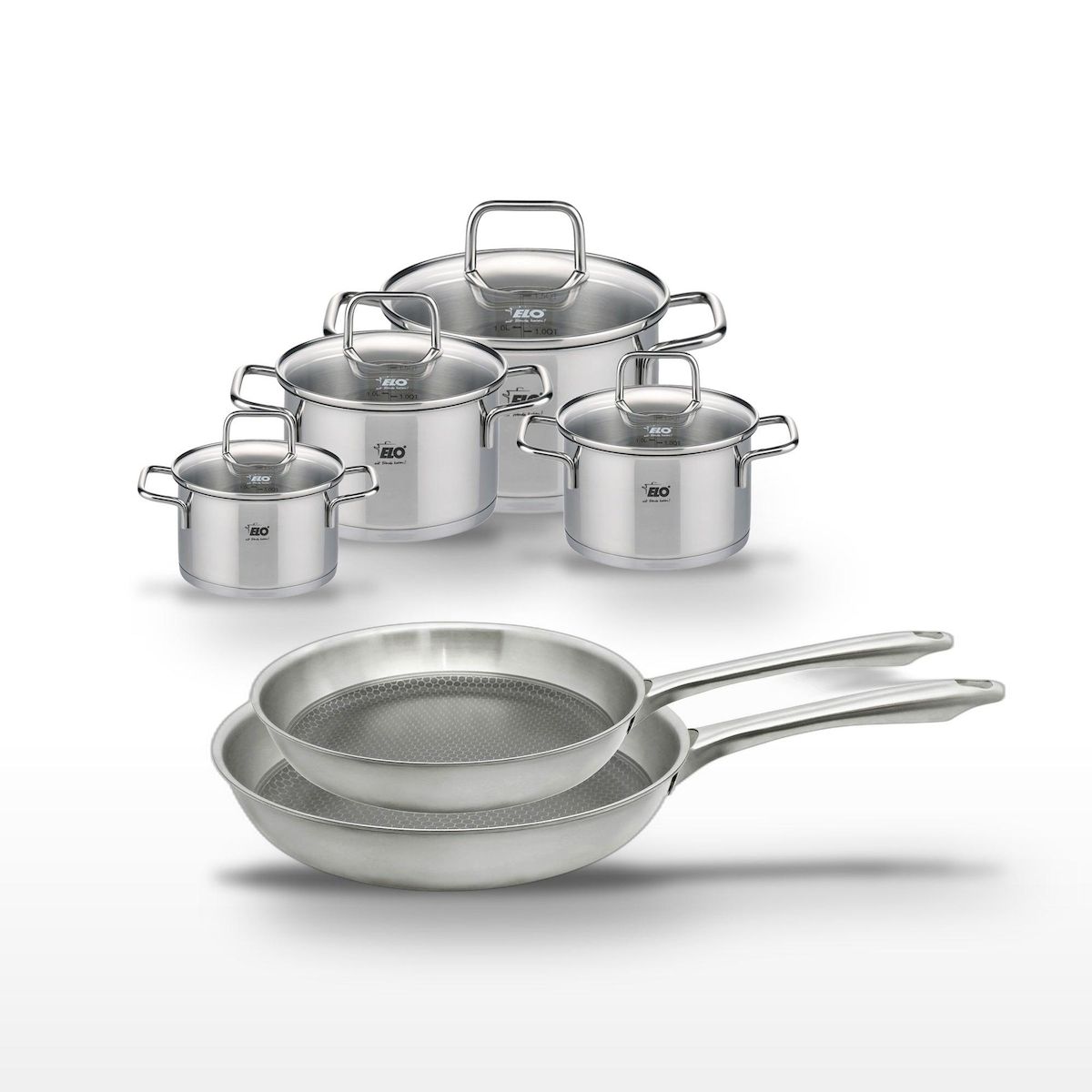 - DESCRIPTION : DESCRIPTION : Ensemble Elo avec poêles 24/28 cm et faitouts 12/14/16/20 cm, en inox avec revêtement antiadhésif.