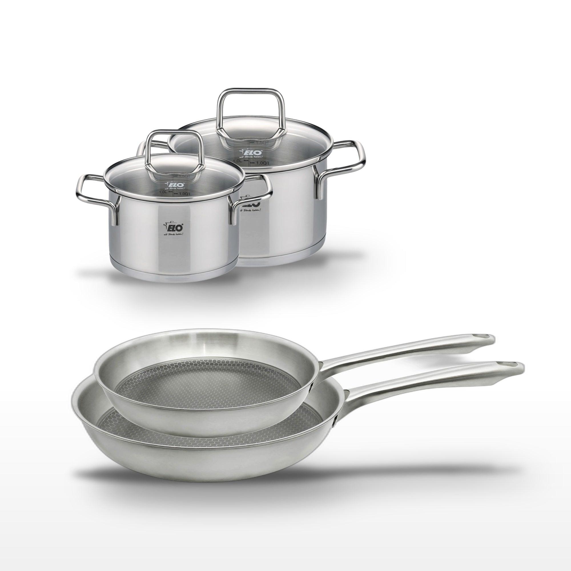 - DESCRIPTION : Le lot Elo Relief Passion inclut 2 poêles en inox de 24 et 28 cm et 2 faitouts de 12 et 14 cm, parfaits pour une cuisine saine et performante.