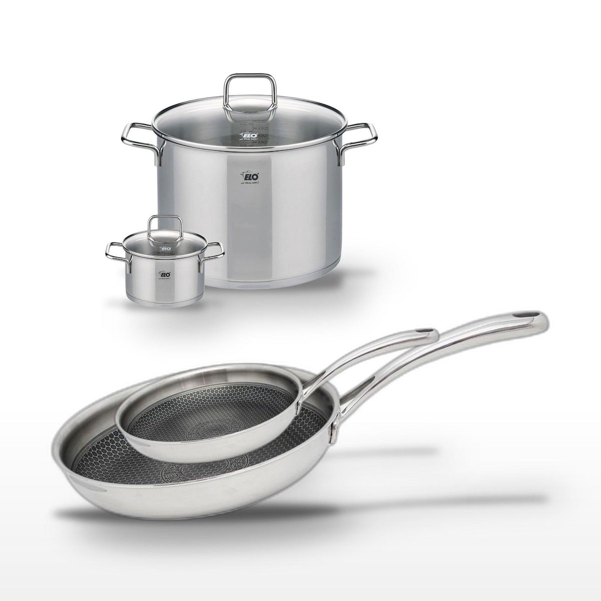 - DESCRIPTION : L'ensemble Elo Relief Evolution inclut deux poêles et deux faitouts en inox, offrant une cuisson homogène et efficace.