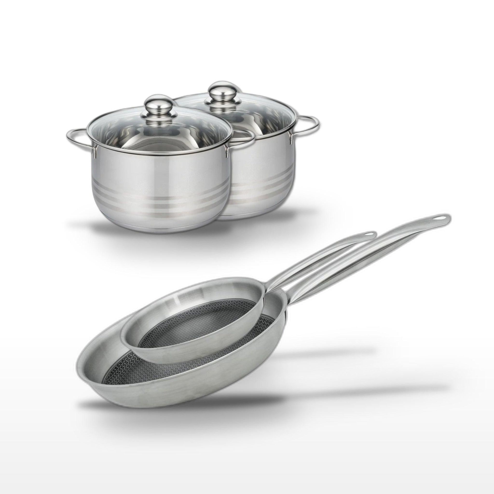 - DESCRIPTION : Profitez d'une cuisson homogène et économe en énergie avec le lot Elo Relief Solution, comprenant 2 poêles et 2 faitouts en acier inoxydable.