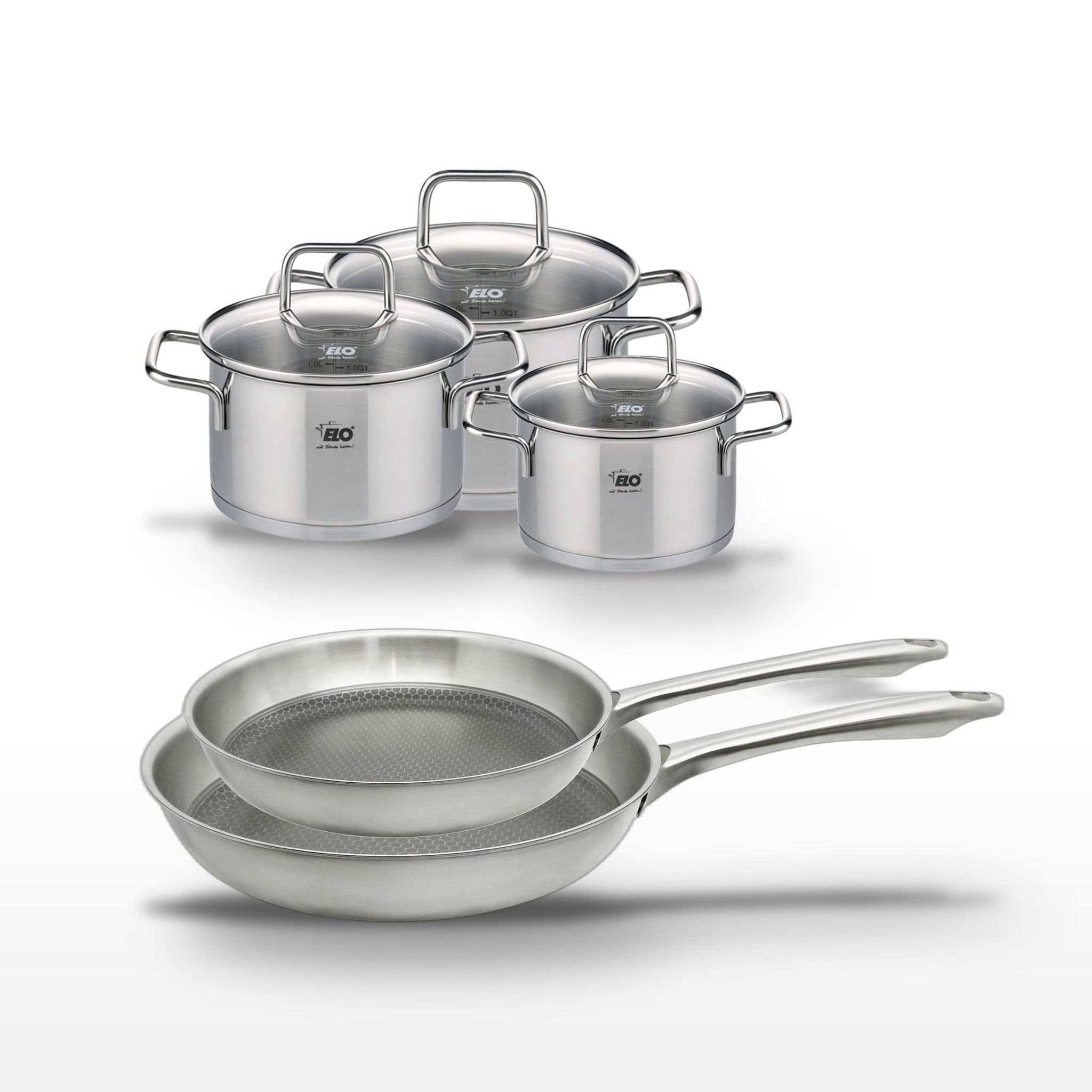 Lot de 2 poêles 24/28 cm et 3 faitouts 12/14/16 cm Elo Relief Passion