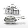 - DIMENSIONS : Poêles 24/28 cm, faitouts 12 cm (0,6L), 14 cm (1,2L), 16 cm (1,7L).