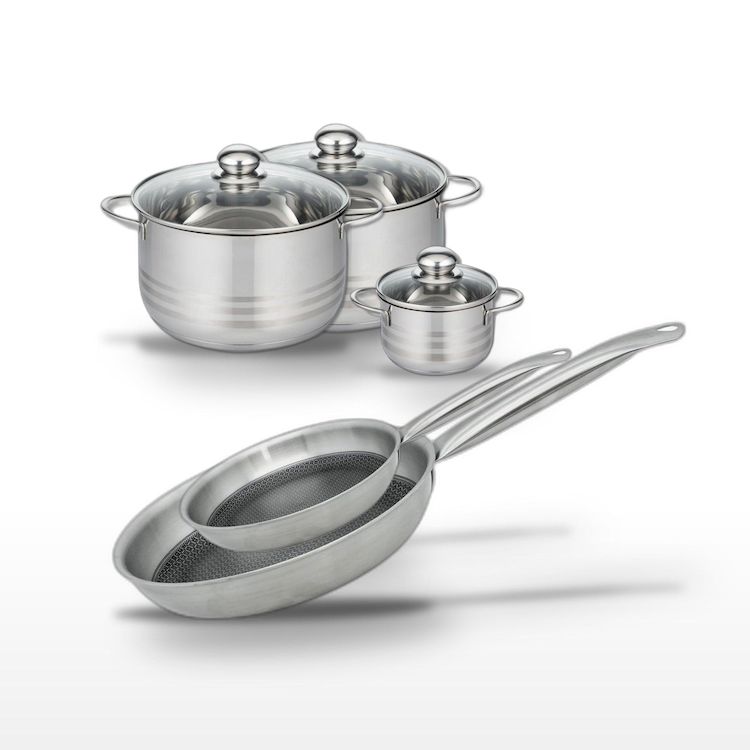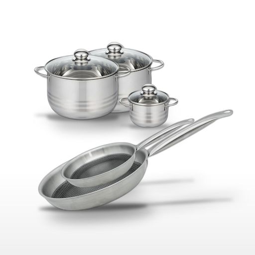 - DESCRIPTION : DESCRIPTION : Ensemble de cuisine Elo Relief Solution avec 2 poêles inox 24/28 cm et 3 faitouts 12/20/24 cm, revêtement antiadhésif.