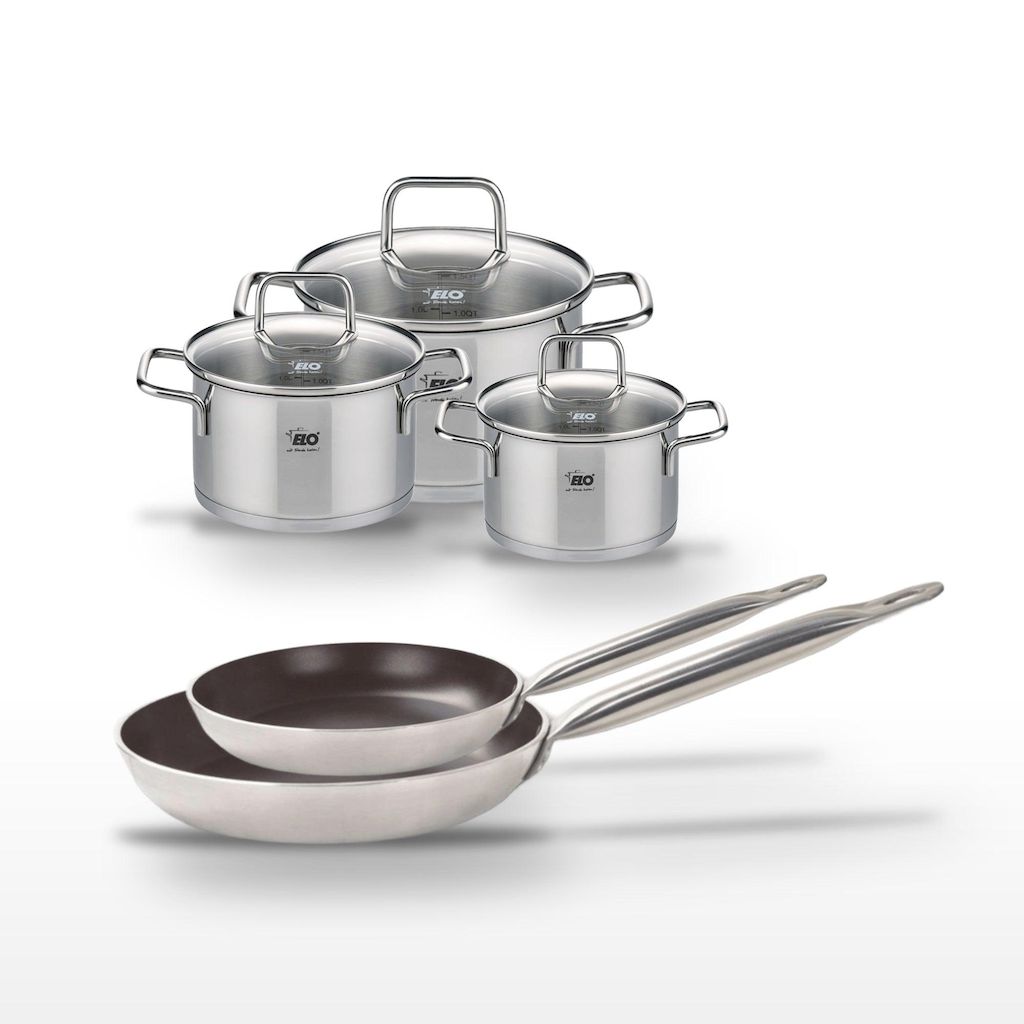 - DESCRIPTION : L'ensemble Elo Bistro Line comprend 2 poêles céramiques et 3 faitouts inox, parfaits pour une cuisson saine et efficace.