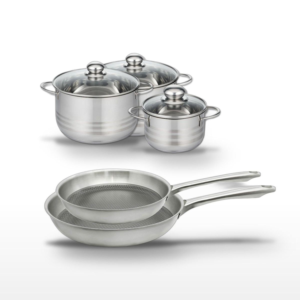 Lot de 2 Poêles 24/28 cm et 3 Faitouts 16/20/24 cm Elo Relief Passion