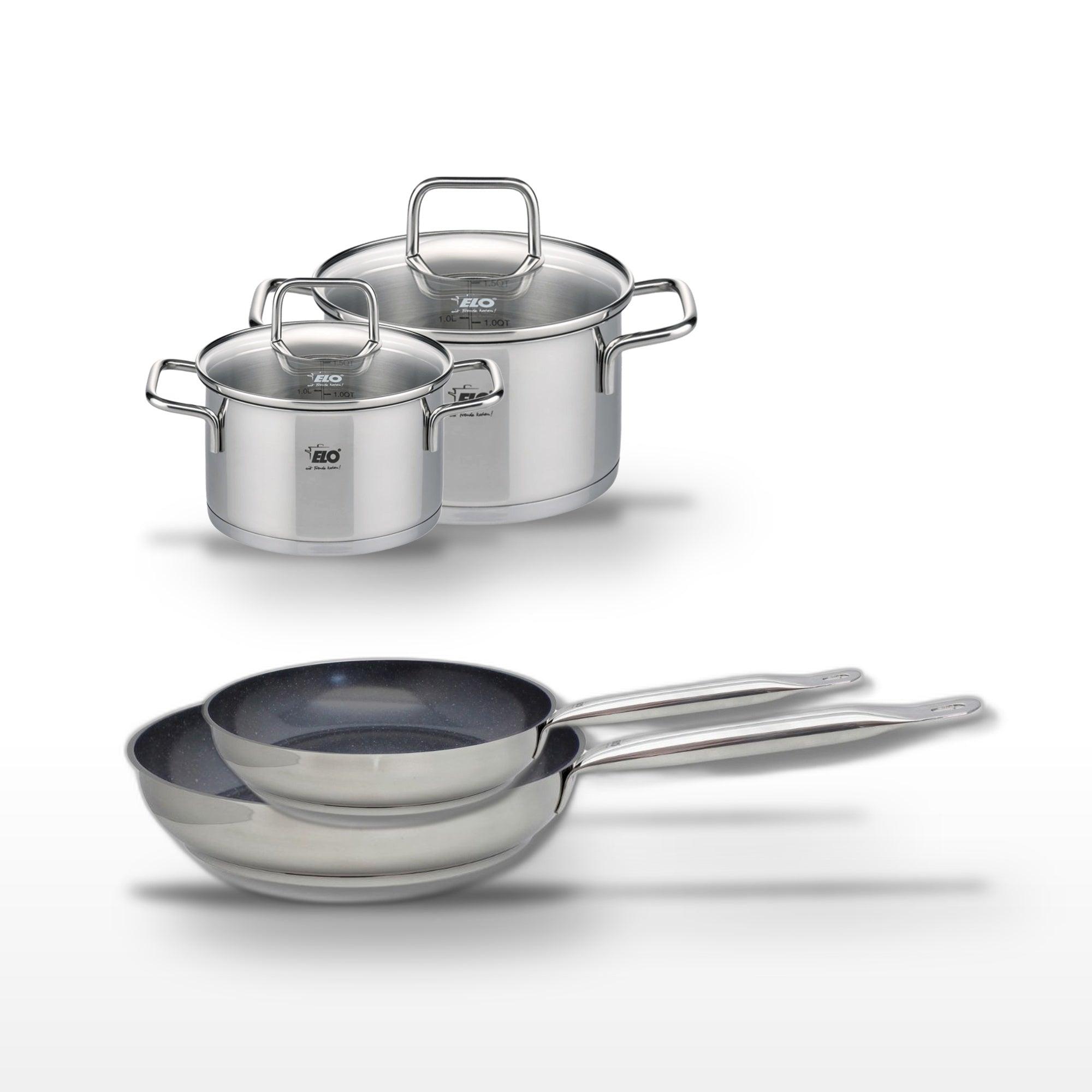 Lot de 2 Poêles 24/28cm & 2 Faitouts 16/20cm Elo Profi Therm Platinum