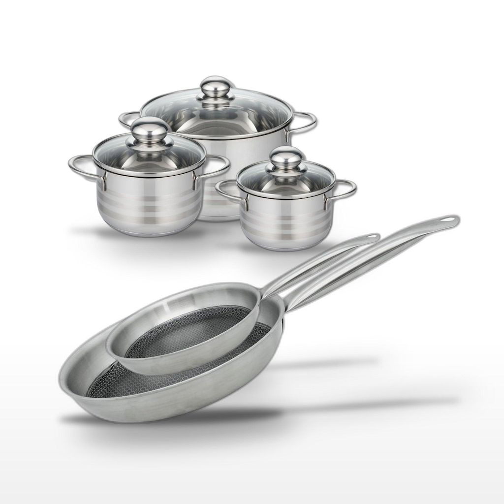 Lot de 2 Poêles 24/28cm & 3 Faitouts 14/16/20cm Elo Relief Solution