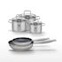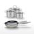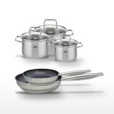 - COMPOSITION : Poêles en acier inoxydable avec revêtement sans PFAS, faitouts en inox avec couvercle en verre.