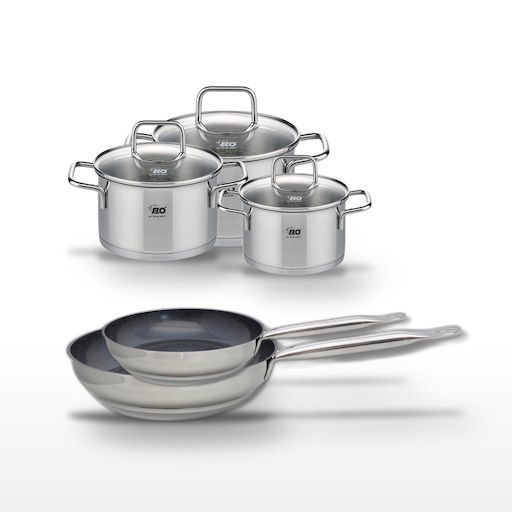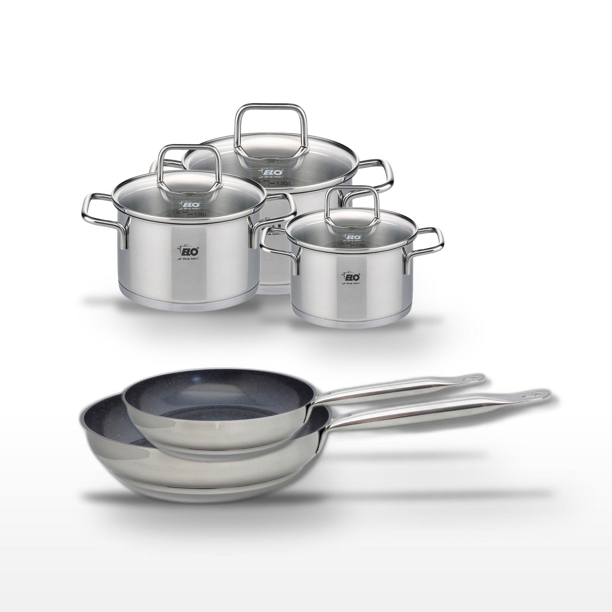 - DESCRIPTION : Un lot complet pour une cuisine optimale, comprenant deux poêles en céramique sans PFAS et trois faitouts en inox, tous de la marque Elo.