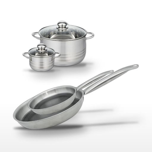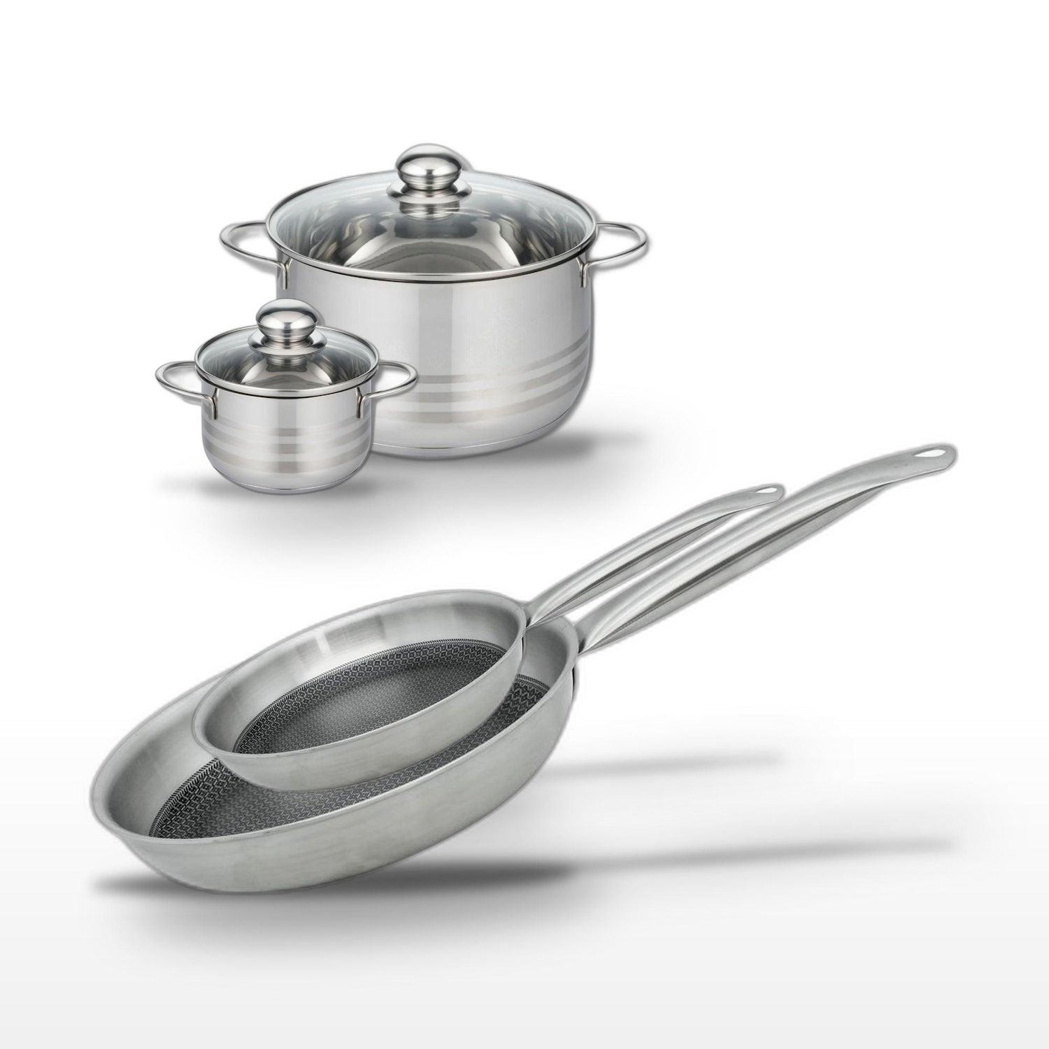 - DESCRIPTION : DESCRIPTION : Ensemble de 2 poêles et 2 faitouts Elo Relief Solution en acier inoxydable, offrant une cuisson homogène et efficace. Compatible tous feux, y compris induction.