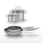 - COMPOSITION : COMPOSITION : Poêles en acier inoxydable 18/10, faitouts en inox avec couvercles en verre, revêtement sans PFAS pour une sécurité maximale.