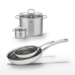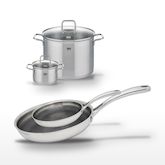 - COMPOSITION : COMPOSITION : Acier inoxydable 18/10 pour les poêles, inox et verre pour les faitouts, garantissant robustesse et durabilité.