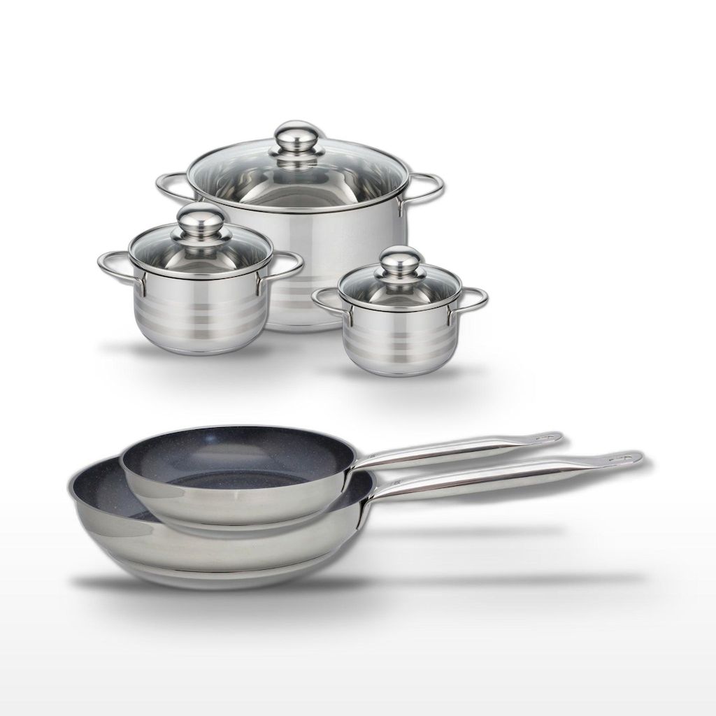 - DESCRIPTION : DESCRIPTION : Ce lot Elo vous offre deux poêles céramiques de 24 cm et 28 cm, et trois faitouts en inox de 12 cm, 14 cm et 20 cm, tous sans PFAS pour une cuisine saine.
